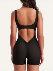 Back wrinkled jumpsuit shorts (Color: BLACK, size: M)