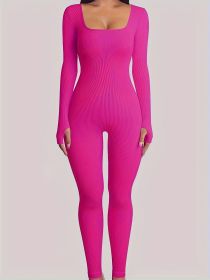 2024 new one-piece yoga suit fitness suit ribbed one-piece pants sports yoga suit (Color: Pink, size: M)