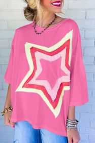 White Colorblock Star Patched Half Sleeve Oversized Tee (Color: Blue, size: XL)